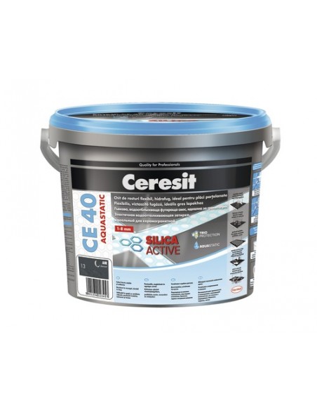 Ceresit CE 40 Aquastatic este un chit flexibil, pe baza de ciment, rezistent la apa si murdarie care se utilizeaza pentru rosturi cu grosimea de pana la 8 mm.