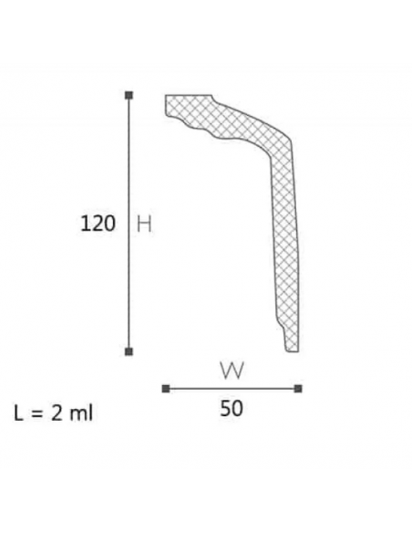Cornișa GT confecționată din polistiren este un profil decorativ de culoare alb mat, este pus în valoare prin designul său simetric. Se potrivește în cadrul unor amenajări de tip clasic, romantic sau baroc venețian. Prin designul său unic, este perfect pentru a ascunde imperfecțiunile de finisare.