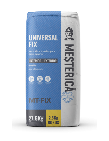 Mesterica Universal Fix (Formula noua) este un mortar adeziv și masă de spaclu pentru plăci de polistiren expandat.