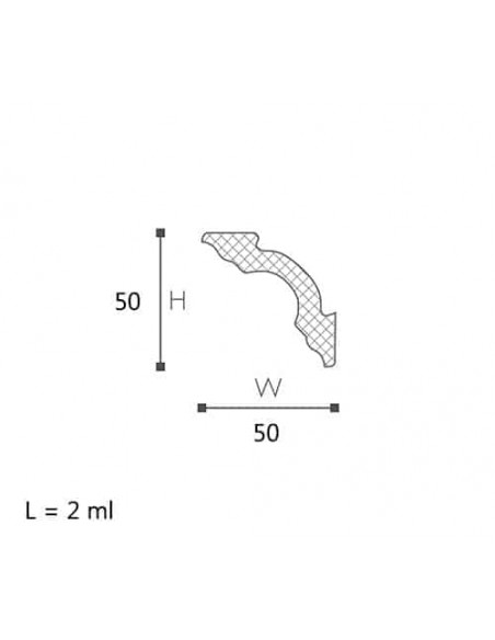 Cornișa decorativă A2 realizată din polistiren, are o rezistenta mare la șocuri și umezeală. Prin aspectul său devine punctul de atracție în cadrul unor amenajări de tip clasic, romantic sau baroc venețian. Pe lângă rolul decorativ, acest profil îndeplinește și un rol funcțional, pentru mascarea imperfecțiunilor de finisare. Aceasta poate fi vopsită în orice culoare, prin folosirea unei vopsele fără solvenți.