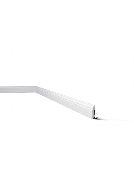 Plinta FB1 este un profil decorativ confecționat din polimer dur, viguros la umezeală și șocuri. Oferă grație locuinței prin stilul elegant și minimalist, fiind potrivit pentru amenajările contemporane. Este potrivit pentru mascarea cablurilor sau a unor defecte de finisare.