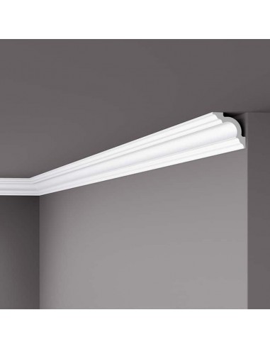 Cornișa decorativă A2 realizată din polistiren, are o rezistenta mare la șocuri și umezeală. Prin aspectul său devine punctul de atracție în cadrul unor amenajări de tip clasic, romantic sau baroc venețian. Pe lângă rolul decorativ, acest profil îndeplinește și un rol funcțional, pentru mascarea imperfecțiunilor de finisare. Aceasta poate fi vopsită în orice culoare, prin folosirea unei vopsele fără solvenți.