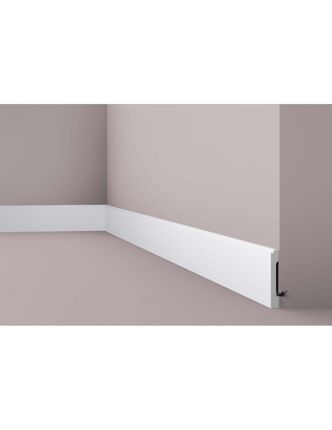 Plinta FD1 din polimer dur este un produs NMC, de calitate premium, culoare alb mat, specifică stilului minimalist. Prin design-ul său unic și simplist este potrivit pentru locuințele realizate în stil clasic, romantic și contemporan-elegant. Se armonizează perfect cu restul încăperii în care este montată și poate fi vopsită în orice culoare prin vopseaua acrilică. Are proprietatea de a ascunde defectele de finisare.