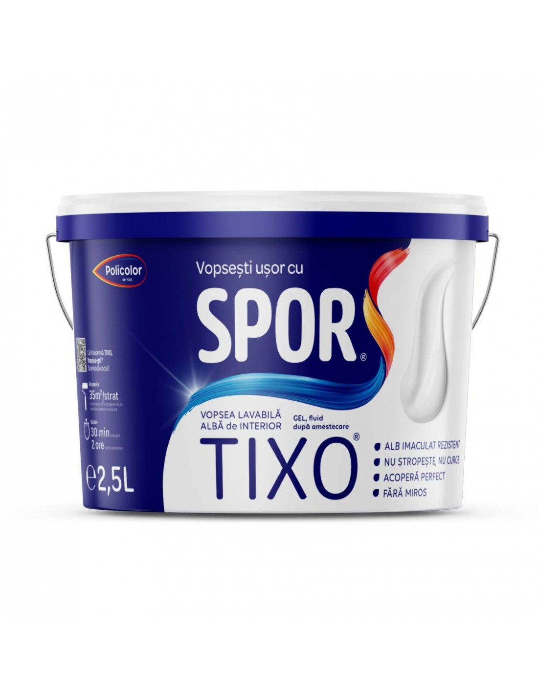 Specificații tehnice Vopsea lavabila alba pentru interior Spor Tixo 2.5 L